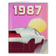 1987白いスポーツカーのポスターと夕日。