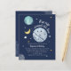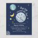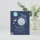 太陽の外宇宙のお祝い男の子のパーティの招待状の最初の旅とのまわりにあなたの小さな1つの特別な日の誕生日を発表。この水彩の招待状は、星、惑星、月を持つネイビーブルーの背景を備えている。"最初の旅のまわりに日!"というメッセージは、この特別な日は始まりだけであることをパーティー全体に思い出させる。私たちの最初の旅行で息子の誕生日をこの世界から出のまわりにて太陽宇宙誕生日ボーイパーティの招待状!パーティー詳細をカードに追加するクリックには、「パーソナライズ」ボタンを使用。