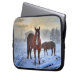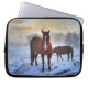 日の出祝で2頭の馬の豪華な写真と"馬の年"は、春の雪の重い秋の後。この美しい画像は、高品質の馬の恋人のラップトップスリーブに特徴。これらの馬を愛する人に最適素晴らし。