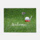 2つの赤いハートのゴルフボールは緑の草の上にあるDoormat