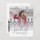 2025年フォトスクリプト数々のの卒業発表のクラス。写真を前面に加え、その裏側にミニマルな写真モダンの卒業発表を追加する。タイポグラフィモダンとスクリプトの手書きの「大学院」文字を搭載。カードを「パーソナライクリックズ」ボタンで完全に変更する