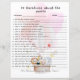 「親についての20の質問」と忘れられない旅に乗り出す – 心温まるパーソナライズされたと赤ちゃんシャワーゲーム喜びの束が来る前に祝は、私たちのゲームと魅力的なゲーム「親についての20の質問」であなたの赤ちゃんシャワーに心温まるつながりのtouchを追加しない。 この楽しい活動は、永遠の思い出を生み出し、有意義な会話を育て祝て、家族を一緒に生み出す愛の物語を作り出すことを目的としている。「親についての20の質問」の本質想像:笑い声、スマイル、そしてつながり感に満ちた部屋は、お客様が親の旅のゲームに没頭する祝と。「親についての20の質問」は単なるゲームではなく、近親者の人生を形作った物語や経験を深く探求しパーソナライズされた、関係者の皆さんにとって心温まる体験を作り出している。質問カー遊ドの配布:ゲームを開始するには、各ゲストに「親についての20の質問」カードを配布する。これらの慎重に細工されたカードは、参加者に共有の洞察、思い出、そして親についての物語を促す一連の質問を備えている。答えと分かち合い:ゲームが進むにつれ、ゲストはカードの質問に答え、逸話や思い出を共有し、親と親の関係にある願いを交互に伝える。質問は、カップルのデートの夜から彼らの最も大切お気に入りのな思い出まで、さまざまなトピックをカバーする。共同婚約:このゲームは、お互いの反応と共有に聞お互いの反応を促して、親についてより多くの発見の喜びで共同婚約を奨励する。笑い、思い出の共有、心温まる瞬間が部屋を満たし、つながりとお祝いの感覚を促進する。キープサケ作成:完成した質問票は、親にとって美しいキープサケとして機能する。この特別な時間に友人や家族が共有する愛と暖かさを取り込んだ心のこもったメッセージ、物語、そして願いのコレクションとなる。
