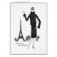 このヴィンテージのイラストレーションは1927人の女性の服飾雑誌から来ます。 それはエッフェル塔の前に立つフランスのな20年代のスタイルの美しいアール・デコの女性を特色にします。 背景色、また中の文字の変更によってカードをカスタマイズことができます!