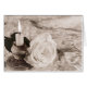 キャンドルとバラがサテンとレースの上に置かれているアンティークのルックカード
