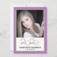 このモダン卒業式パーティーの招待状は、正面に四角い写真が、背面に完全な垂直の写真が含まれている。カラーテーマは紫で、2020年を卒業した金ゴールドは脚本に登場エレガントする。