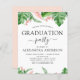 バジェットクラス2022熱帯ヤシのフローラ花の水色卒業パーティー招待状-お祝いのクラスになる特別な卒業生のための植物性の赤面のピンクの花と熱帯ハワイアンの緑モダンと美しくスクリプトのタイポグラフィを含む。