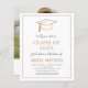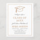 2023年度予算この金ゴールドと白卒業パーティの招待状をスタイリッシュメッセージと詳細で白い背景にパーソナライズする。今回のスタイリッシュ招待には、高校卒業生向けのキュートでスクリプエレガントトタイポグラフィの写真が含まれている。