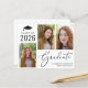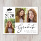 シンプルでリーズナブルな2023年度卒業生向け卒業発表。 3枚の写真のコラージュとエレガントなスクリプトで「卒業生」と記載。 卒業生の名前、年度、学校または大学名を現代的なタイポグラフィーで追加できます。