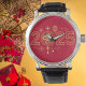 2025祝年のこの美しくデザインされた時計とスタイルのヘビの年。赤い背景中国のにヘビや提灯、縁起の良いシンボルなど複雑な金ゴールドモチーフを鮮やか取り入れ、新年の鳴り声にピッタリ中国のである。黒いレザーお洒落ストラップはデザインを補いはっきりした、あらゆるフェスティバル大事な行事のための洗練されたアクセサリーにする。コレクションに文化的な意味を持つtouchを贈ったり追加するのに理想的な時計で、伝統とエレガンスを1つのパッケージに組み合わせ素晴らしている。