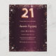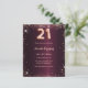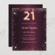 21歳エレガントの誕生日。バーガンディのグラデーション背景色。飾バラ金ゴールドフェイクグリッター粉。名前とパーティー・詳細のパーソナライズおよび追加名前は手書入力のスタイルスクリプトで指定する。1枚= 1枚の招待状を印刷したエッジからエッジ