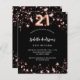 クラシックの黒い背景飾、バラの金ゴールド星。名前とパーティー・詳細のパーソナライズおよび追加番号21はバ書ロンスタイルスクリプト付き。1枚= 1枚の招待状を印刷したエッジからエッジ