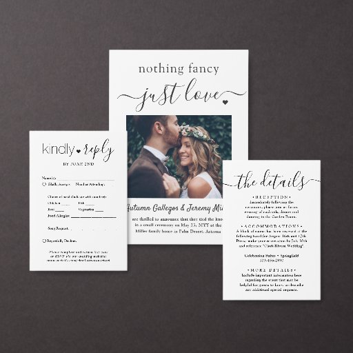 2 Photo Nothing ファンシー Just Love'結婚 Elopment 招待状