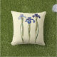 クリーミーな浅い黄色の正方形の等級の前部そして背部の植物学的に図解入りの、写真付きのな紫色のアイリスの3つのエレガントな茎は綿枕にアクセントを置きます。