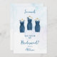 3 Chic Blue Bridesmaid Dresses Watercolor Effect Proposal Card.