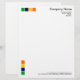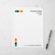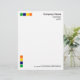 4色モダンの正方形をモチーフにしたビジネスレターヘッド。モチーフと文字はページの端から1/2"の位置にある。モチーフは1.5インチのマージン(多くのワープロではデフォルト)で文字に合わせてサイズを設定し、配置する右上の会社と住所詳細で、くもの巣と電話詳細を下に揃え、右から約1/2"の位置に配置して、文字文字のバランスを整える。デザインはカスタマイズ様々な方法で違うもある。