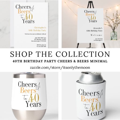 40th Birthday Party Cheers Beer Minimal Black Goldデザイン: Only The Moon