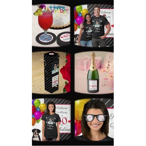 40歳と素晴らしい40歳の誕生日フォトブラック&ホワイトパーティーアイテム。彼女または彼の写真と名前でパーソナライズ。白黒のパターンストライプ。スクリプトスタイルフォントと色は、編集するときに変更できる。