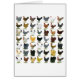 いろいろな品種および色の四十九羽の雌鶏はワイシャツおよびポスターからのカードおよびエプロンにすべてでてきぱきとしている見ます!