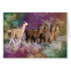 5頭のラマ、1頭の白いラマおよび4頭の茶色のラマは雲のファンタジーの歩行を取ります。 渦巻く葉、ひらひら飛び回る鳥、豊富な多彩の背景のきらめく星。
