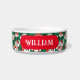 かわいい緑のビンテージ50年代のホリデークリスマスパターンカスタム名前ペットフードボウルに白いふわふわの子猫たち