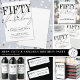 五十歳&素敵な誕生日パーティー丸型ステッカー。 このモダンでエレガントなステッカーのデザインで、「FIFTY&素敵な」を上部に配置 - 「FIFTY」は太い黒のセリフフォントで、「素敵な」は柔らかな灰色の手書きスクリプトで、シックな黒と白の外観を実現。