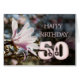 春に木の上に成長する美しいピンクのマグノリア。50歳の誕生日に必ず喜んでもらえる美しいカード。