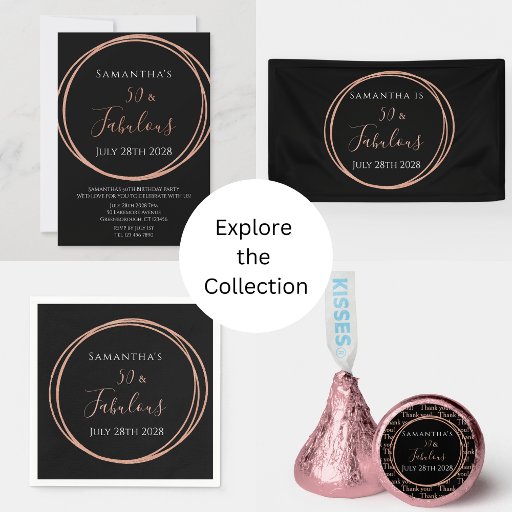 これはシックで50歳のエレガント誕生日パーティーの招待状だ。このスタイリッシュデザインはクラシックブラックとバラ金ゴールド。文字「Samantha's 50 and Fabulous」と前後のお祝い日がある。このシンプルタイポグラフィモダンモチーフはバラ金ゴールド効果円で囲まエレガントれている。フロントには、パーティーとRSVP詳細の文字も備えている。このスタイリッシュデザインは、シックで忘れられない50th誕生日パーティーお祝いに最適だ。パーソナライズするには、この文字ボックスに自分の名前、日付、パーティー会場、RSVP情報を追加する。色またはフォントを変更するには、デザイン編集ツールをチェックアウトする。パーソナもしリ救済ゼーションが必要か、zazzle charまたは電子メールでカスタムデザインを作成するにはursuladawnmoon@gmail.comを参照する必要がある。