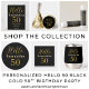 これは黒エレガント黒とパーソナライズされた金ゴールド50歳の誕生日デザインだ。このモダンタイポグラフィデザインはクラシックブラックと金ゴールド。トレンドタイポグラフィと宇宙に「Hello 50」という文字があり、名前を追加できる。このスタイリッシュデザインはシックで忘れられない50歳の誕生日パーティーお祝いに最適で、パーティーのバッグ、抱き枕、または50歳の贈り物として理想的。パーソナライズするには、この文字・ボックスに名前を追加する。色またはフォントを変更するには、デザイン編集ツールをチェックアウトする。パーソナもしリ救済ゼーション、マッチング製品、またはzazzleチャットや電子メールを介したカスタムデザインの私のための必要がある: ursuladawnmoon@gmail.com