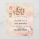 バラ金ゴールド、赤面ピンクの素朴なメタリックフェイクな背景を探す。バラ飾金ゴールドとピンクの花模様、バラ、パンパスグラスと。名前とパーティー・詳細のパーソナライズおよび追加50番はバ書ロンスタイルフォント。