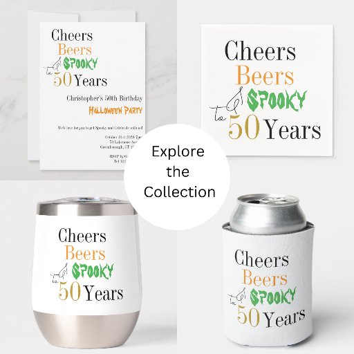 This is a cool and modern, 50th birthday, Halloween party design. It is a simple, minimal design, in classic black and white typography with pops of gold, orange and green. Perfect for a cool and fun, Halloween and beer themed, 50th birthday party, and ideal as a birthday gift, party favors, accessories or keepsakes. This design is fully customizable, simply use the personalize this button to change the age, or the rest of the text, or use the editing tool to change the color or font. If you need help with personalization, matching products, or for a custom design, contact me via zazzle chat.