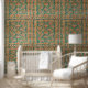 60s緑のヴィンテージトルコのペルシャ柄の皮とスティック壁紙。