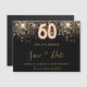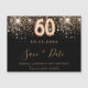 Aとガーリートレンディー60歳の誕生日パーティーのために日付マグネットを保存する。黒い背景飾と金ゴールドフェイクグリッター。日付、名前、および文字のテンプレート。金色の文字。文字:日付の保存は大きな書トレンディーの手入力スタイルスクリプトで行う。