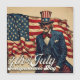 風化した誇りを持ったまだ姿は、ボロボロのアメリカ国旗の前に立っている。彼の存在は、自由と強靱性とアメリカの夢の永続的な精神への賛辞である。詩的な尊厳と愛国的な強さで独立記念日の本質を捉えたイメージ。