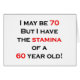 70才である私は60歳のスタミナを有します! 70歳のためのユーモアのあるなデザインは誰かと彼または彼女を知っている10年より若い競うことができます。 素晴らしい第70誕生日プレゼントを作ります。