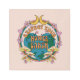 グルーヴなフォント、花、キノコ、ハートを使ったかわいいレトロデザイン。