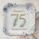 75th Birthday Party Elegant Dusty Blue Floral 招待状