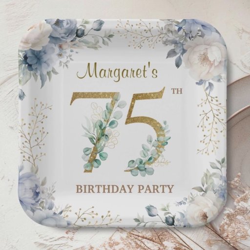 Celebrate the 75-year milestone in style with our elegant "75th Birthday Party Elegant Dusty Blue Floral Invitation!" Perfect for a memorable 75th birthday party. Order your today and make your celebration truly special! Please note: Gold glitter effects are only simulated; no real gold will be used in the printing process