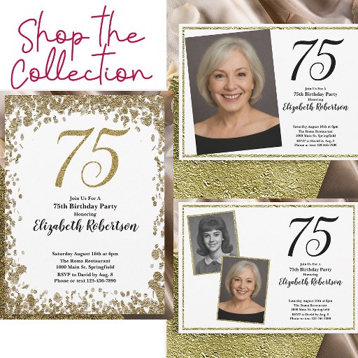 75th Custom Photo White and Gold 招待状