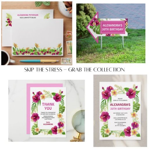 76歳の誕生日招待状 トロピカルパーティー ルアウ ピンクのハイビスカス
