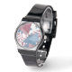 80年代の月抽象芸術 |ほこりっぽいピンクとブルーのカスタム 腕時計