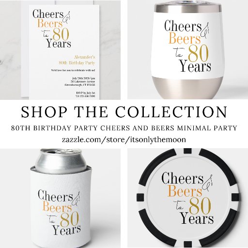 80th Birthday Party Cheers and Beers Minimal Partyデザイン: Only The Moon