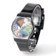 80sカラー抽象芸術 | ネイビーバラ金ゴールドミントカスタム 腕時計