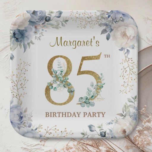 85th Birthday Elegant Gold & Dusty Blue Peonyデザイン: H-Art Studio Design