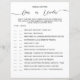 A GAME sheet of paper for a bridal shower in an elegant, minimalist style.