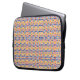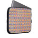 A laptop sleeve with a vibrant, intricate geometric pattern in yellow, blue, and pink. The tone is colorful and lively, enhancing the tech accessory.