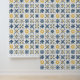 Give your spaces a sophisticated and timeless touch with this beautiful self-adhesive wallpaper, inspired by traditional Mediterranean tiles. Its design features nine floral and geometric patterns in an elegant palette of navy blue, yellow, and white, evoking the artisanal beauty of European ceramics. With a classic style that blends tradition and modernity, this wallpaper is perfect for those looking for an effortless decorative upgrade.