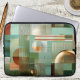 Laptop sleeve featuring a modern abstract Bauhaus style design in green, teal and gold.