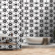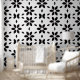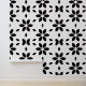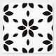 A captivating abstract floral print featuring elegant black petal shapes forming modern, stylized blossoms on a crisp white background