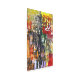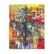 A colorful abstract representation of a cityscape with geometric shapes and bold colors. The composition features a mix of structured and chaotic elements