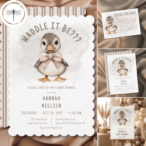 Celebrate a little one on the way with our charming “Waddle It Be?” round baby shower paper plate. Featuring an adorable gender neutral watercolor baby duck donning a sweet bow, set against a soft light brown watercolor wash, this design is as heartwarming as it is stylish. With a warm neutral palette of white, tan, and brown, and a coordinating striped pattern on the back, it’s the perfect blend of rustic charm and playful elegance for a gender reveal or baby shower. Created by Simply Farmhouse Press.
